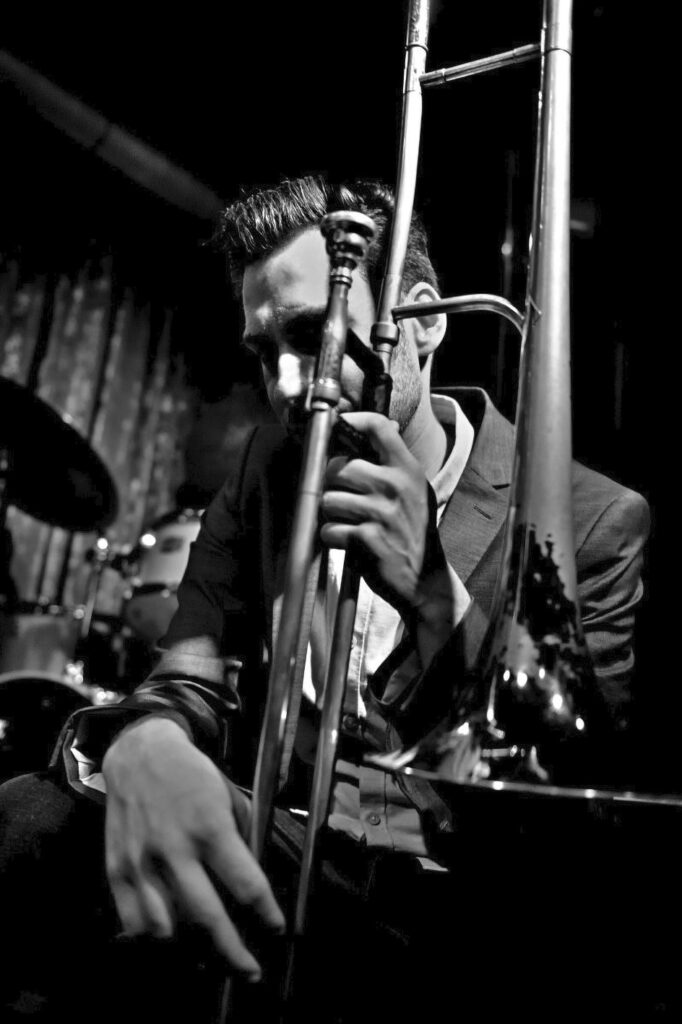 Der Posaunist Marc Roos wurde 1988 in Ostfildern (Großraum Stuttgart) geboren. Bereits mit 6 Jahren fand er den Weg zur Musik durch seinen Vater. Er erhielt zunächst Unterricht auf dem Tenorhorn und später im Alter von 10 Jahren auf der Posaune. Hauptsächlich musizierte er in dieser Zeit in verschiedenen Blasorchestern im Umkreis. Mit 12 Jahren begann er sich für Jazz zu interessieren und machte erste Bigband-Erfahrungen bei der Amateur-Bigband seines Vaters. Er nahm Unterricht bei Profimusikern im Umkreis und begann sich mit der Improvisation im Jazz auseinander zu setzen. Das Musizieren in verschiedenen Bigbands im Umkreis weitete sich aus. Nach seinem Abitur machte der Posaunist zunächst einen kleinen Umweg hinsichtlich der Musik und absolvierte zunächst ein duales Studium als Bachelor für Mechatronik. Nach einem knappen Jahr als angestellter Ingenieur, überzeugte ihn jedoch sein Wunsch sich voll und ganz der Musik zu widmen. Im Jahre 2012 begann er sein Studium in Basel an der Hochschule für Musik, Abteilung Jazz, bei Professor Adrian Mears, welches er im Juni 2015 erfolgreich mit dem Bachelor abschloss. Er studiert weiterhin in Basel im Masterstudiengang und erhält Unterricht bei Nils Wogram.