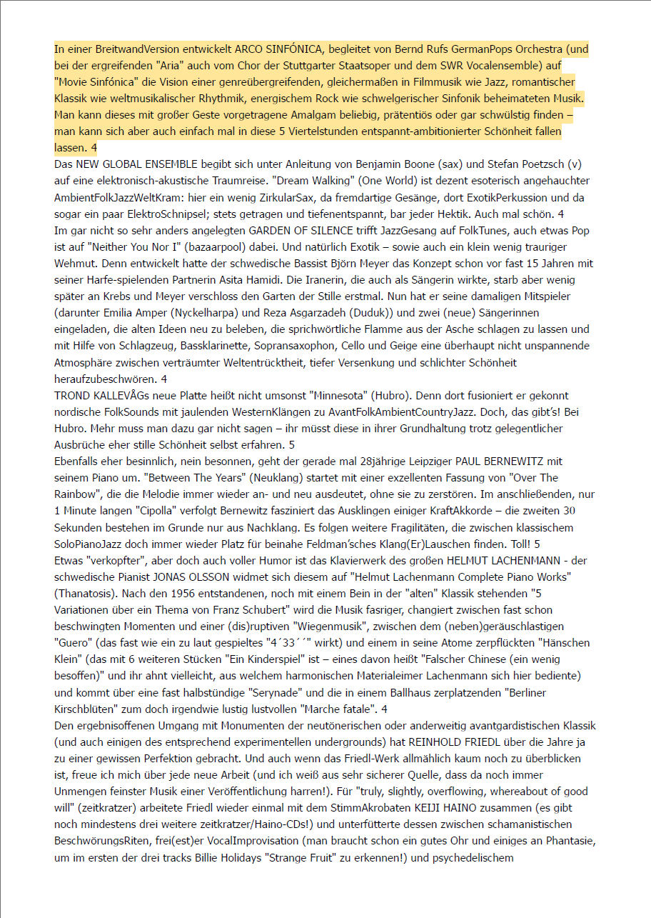 • RONDO-Magazin: Erwähnt die Vielseitigkeit als Arbeitsprobe für Filmmusik.